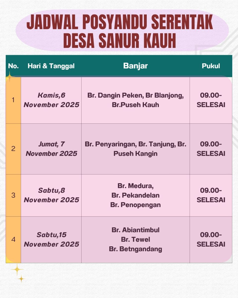 JADWAL PELAKSANAAN POSYANDU DI DESA SANUR KAUH
